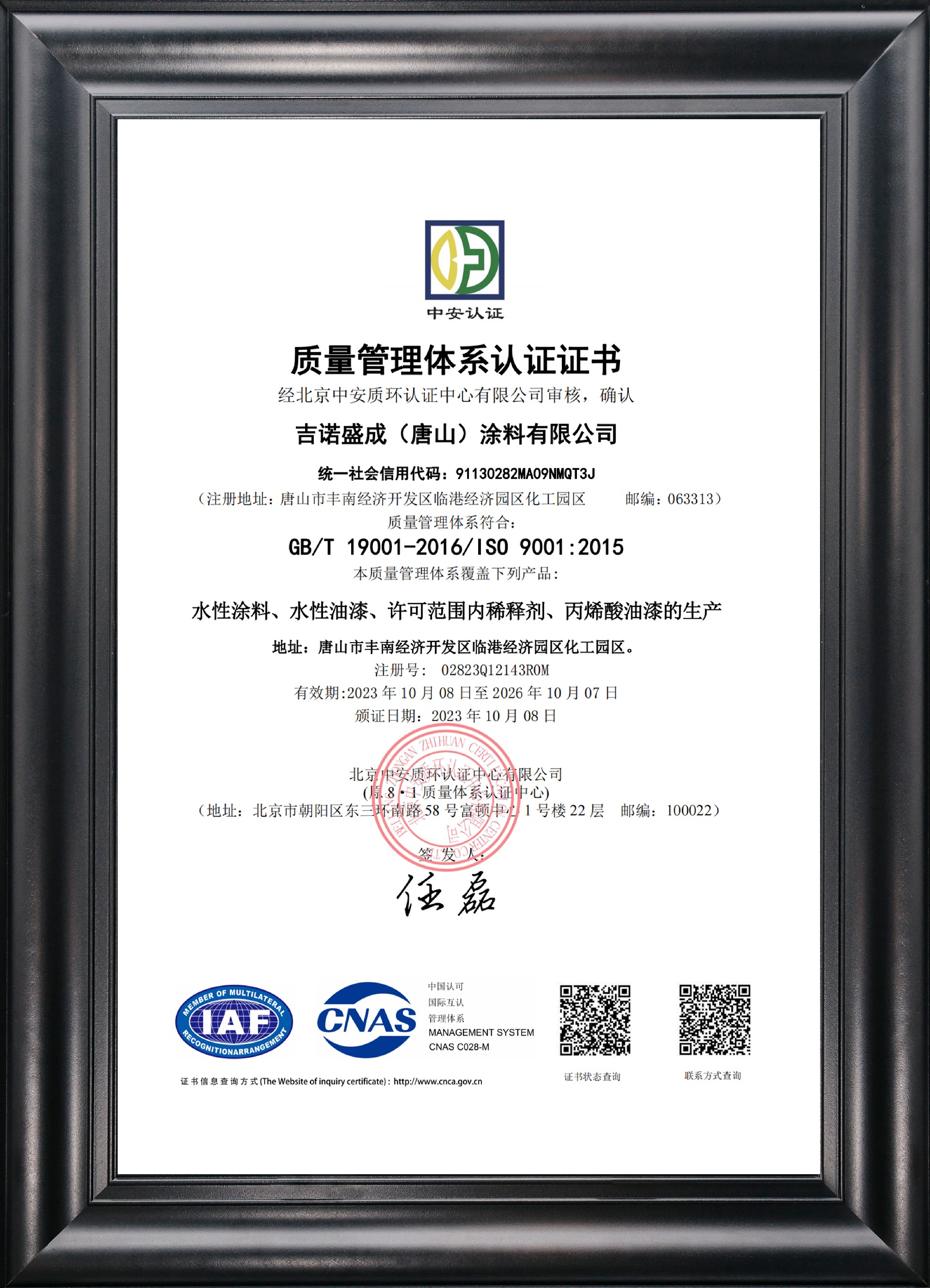通過這一認證,證明了我們致力于提供符合客戶需求和標準的高質量產品和服務,不斷改進我們的質量管理體系,以達到客戶的期望和滿意度。